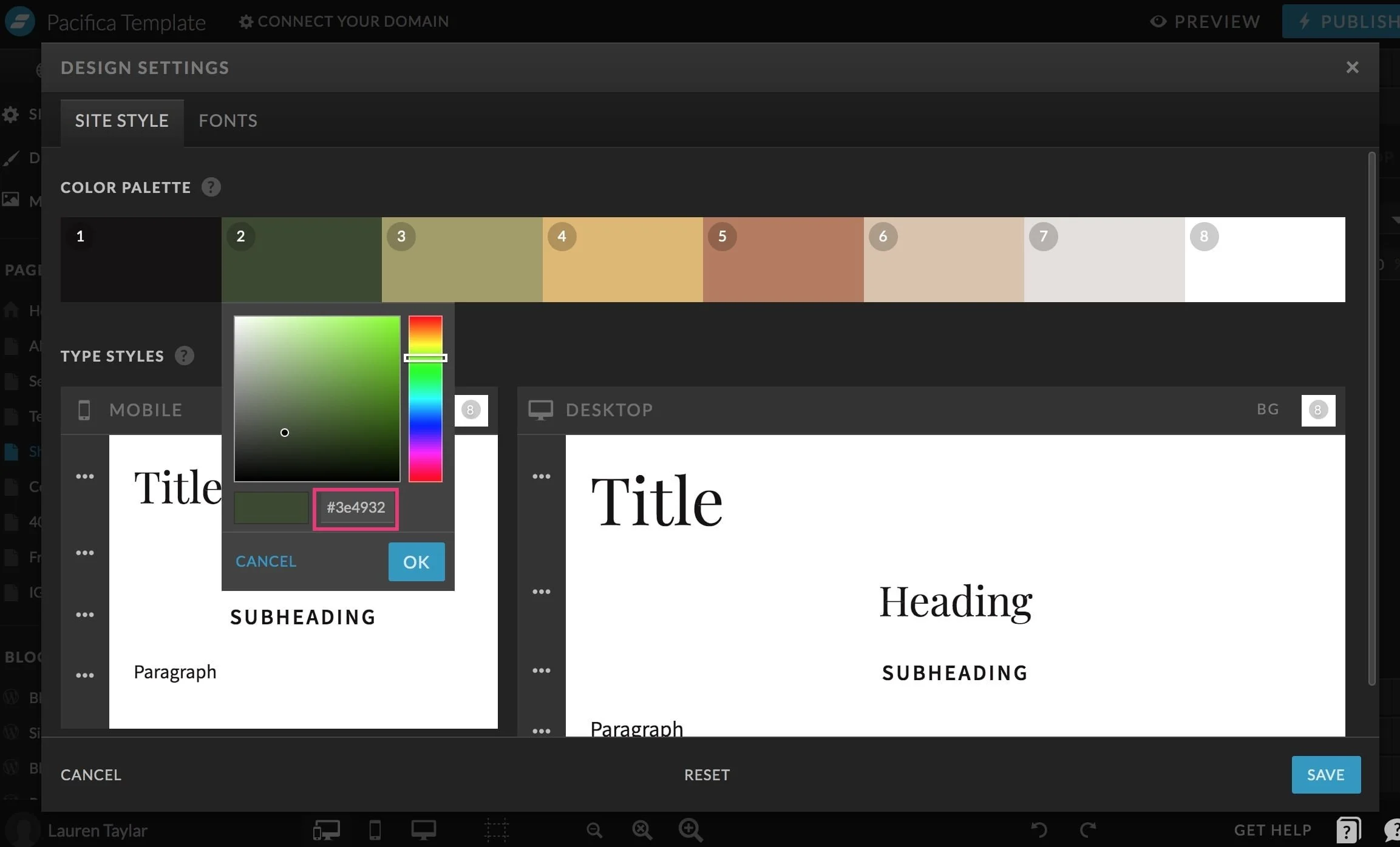 You can change your fonts and colors under “design settings” on the left hand panel.