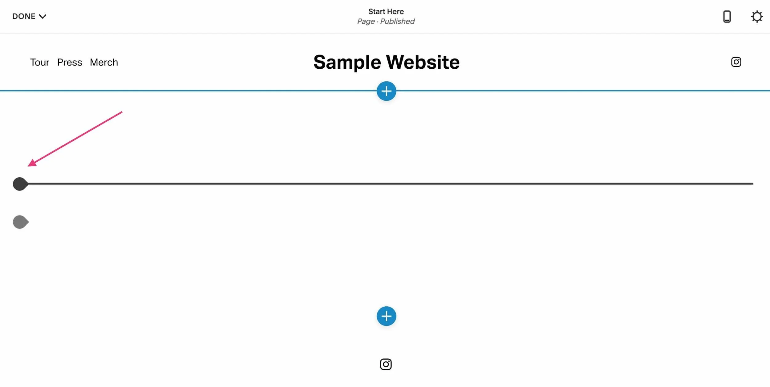 If you’re on Squarespace 7.1, you’ll need to add a section to the page before the insert point becomes visible.