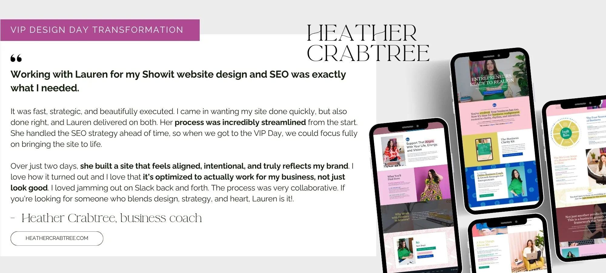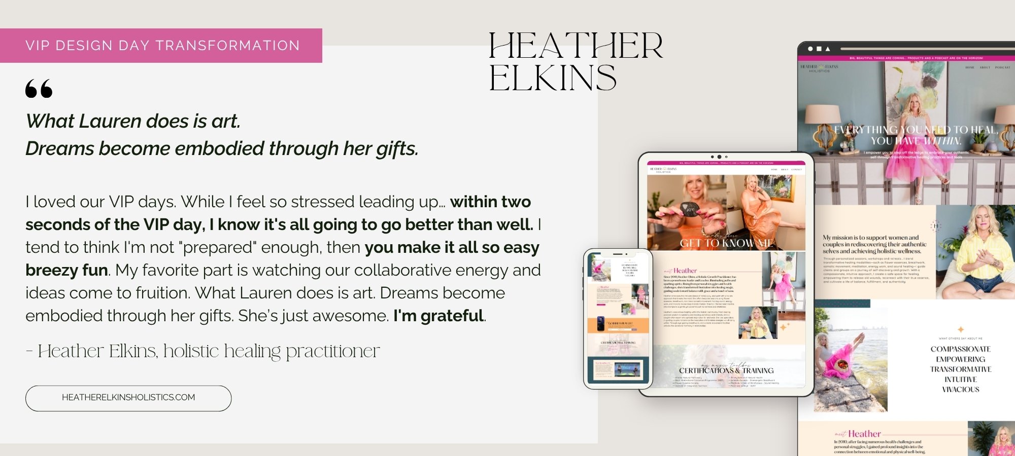I've completed 20+ VIP Design Days specifically for coaches and creatives (and a total of 85+ projects), so I understand your business model, your positioning challenges, and what makes websites convert in your industry. This isn't a one-size-fits-all template approach - it's strategic, custom design informed by years of specialization.