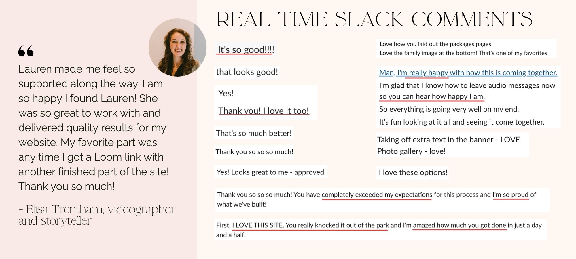 One client told me that another web design agency told them it would take months to create their website, and she felt like opening Slack during VIP Days was like Christmas morning. That is the type of feedback I live for!