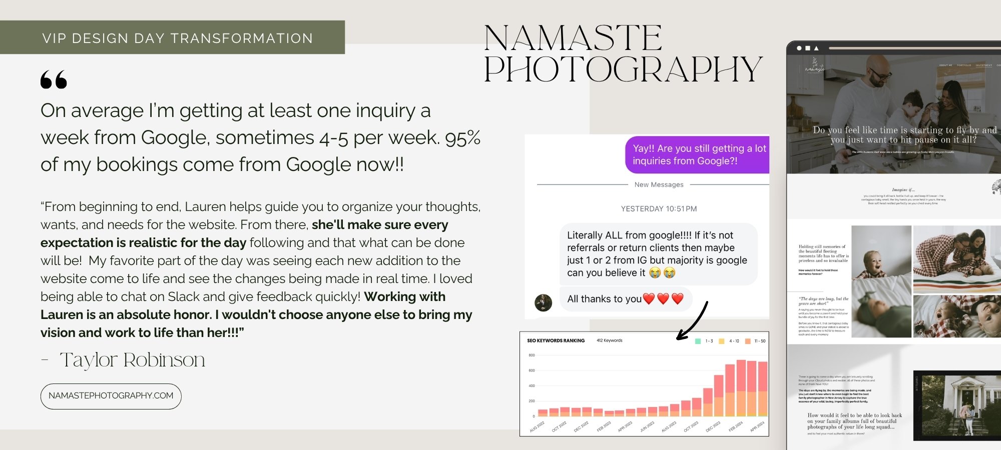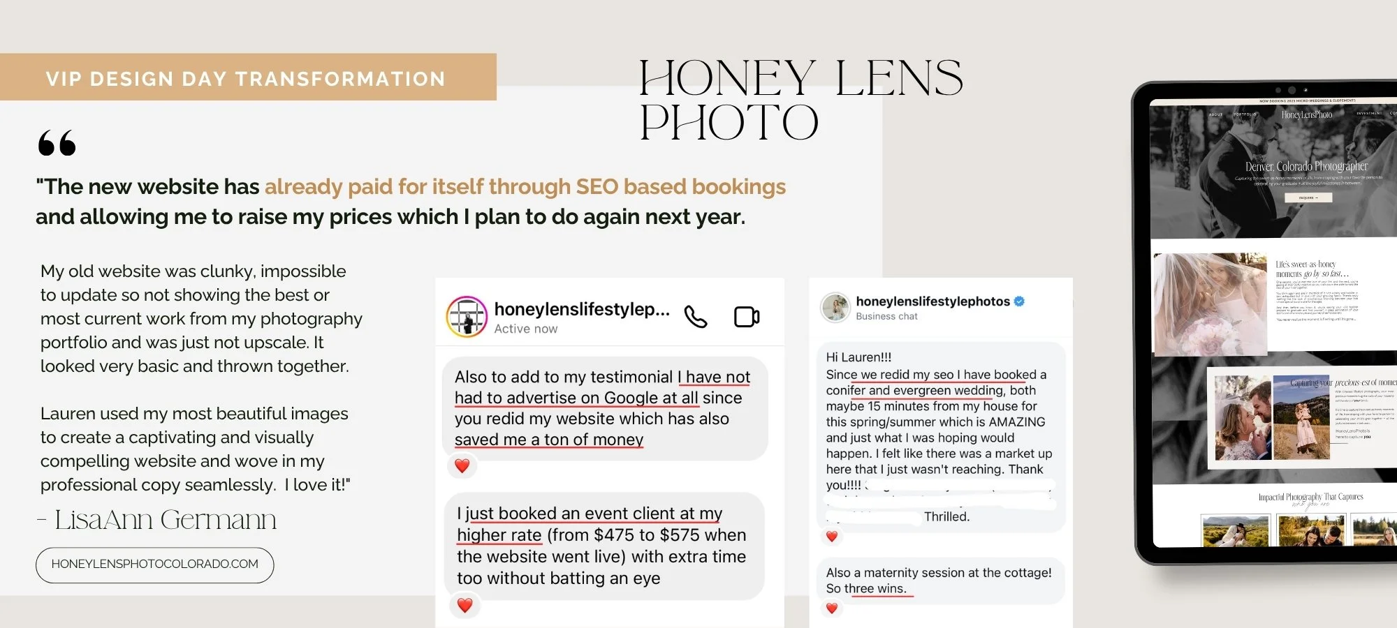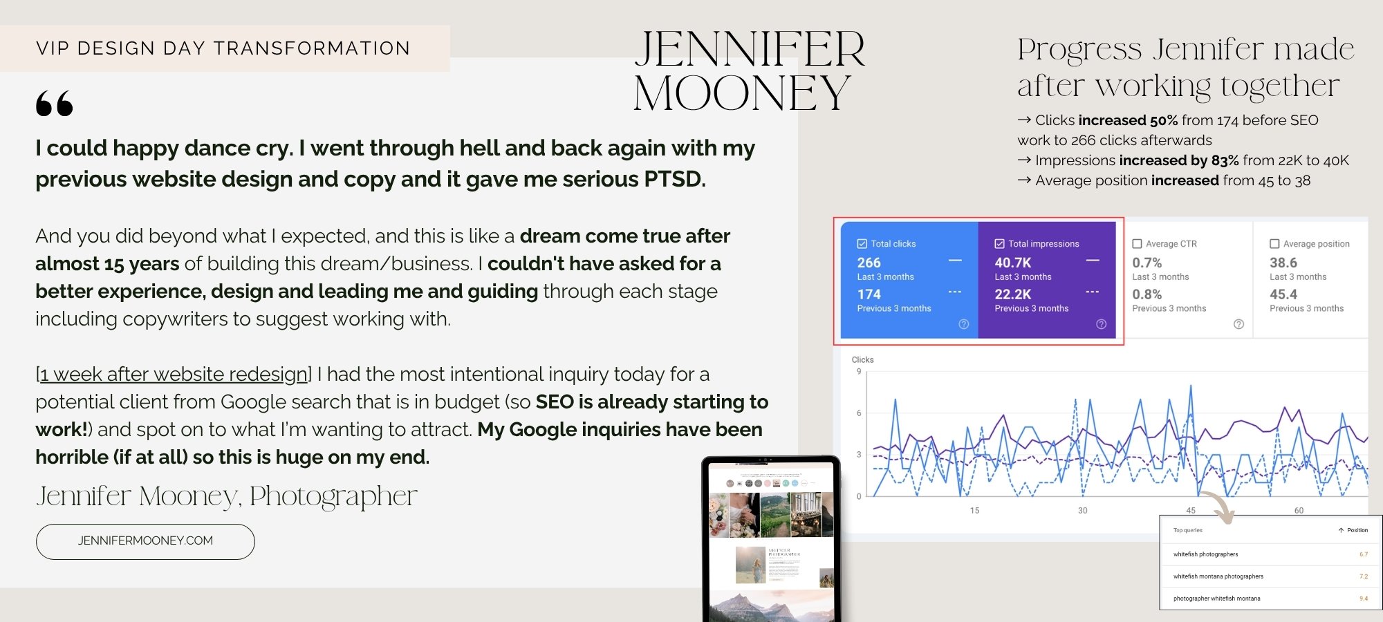 One photographer client fit this profile perfectly: 15 years in business, clear brand and positioning, decisive personality, needed to be done before her busy wedding season. The VIP day delivered exactly what she needed without the drawn-out timeline that would have conflicted with her work commitments. Check out herfull website transformation here.