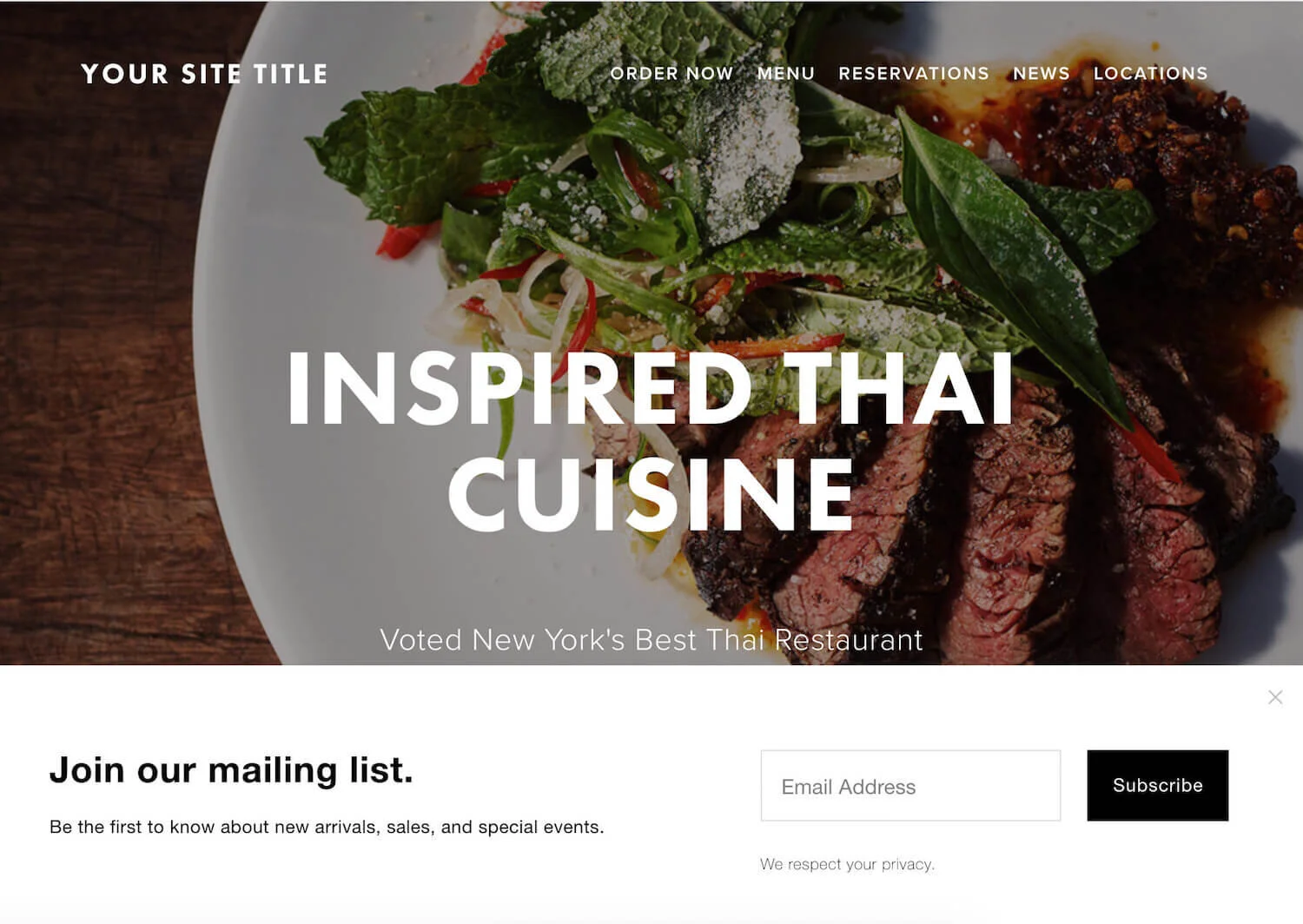 Squarespace pop ups are simple in nature, which follows suit with Squarespace as a whole. There isn’t a whole lot of customization, which is why a lot of the templates are clean and don’t allow a lot of text.